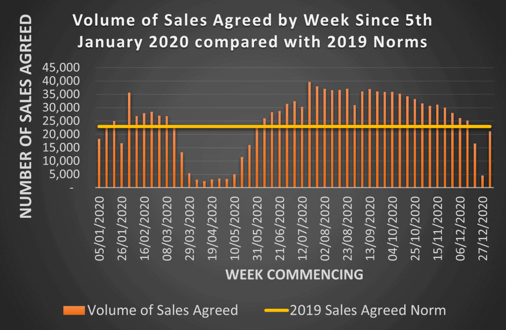 2021 has 21,141 sales agreed in the first week and this is UP 15.7% on the prior year and this 8% down on 2019.